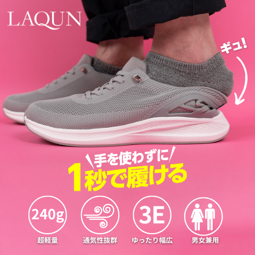 手を使わず1秒で履ける、新感覚スニーカー「LAQUN(ラクーン)」。